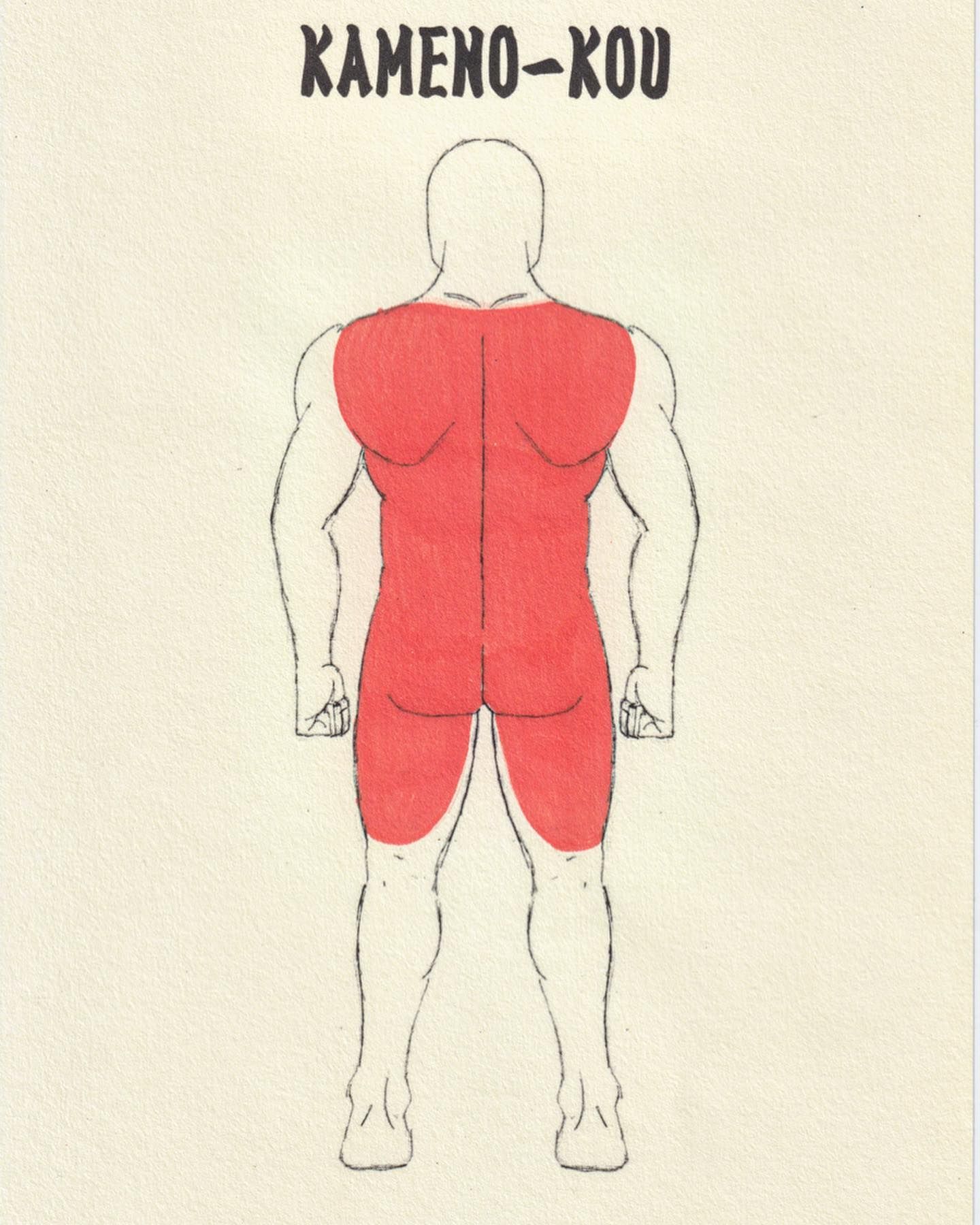 • The form of Gaku on the back is from a little above the back of the knee to just under the neckline(Kameno-kou, Sewari).