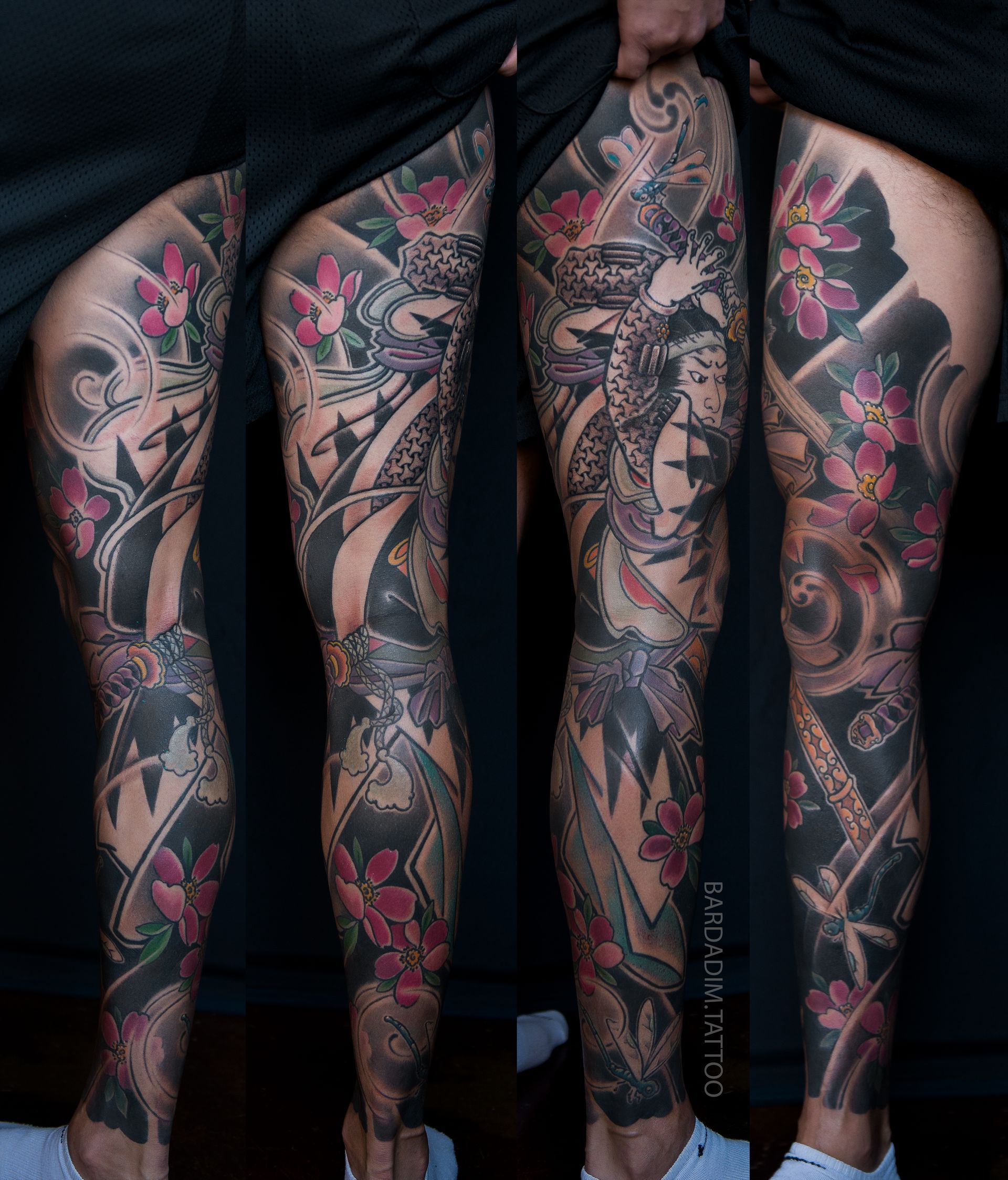 Modern Irezumi leg sleeves created at Bardadim Tattoo reflect strength, balance, and motion. Each composition follows the body’s natural flow, connecting lower and upper forms through timeless Japanese design principles.