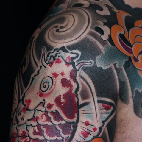 A koi that does not follow the natural flow of the arm or leg will appear static. Traditional irezumi compositions are built around anatomy, allowing the tattoo to move with the body.