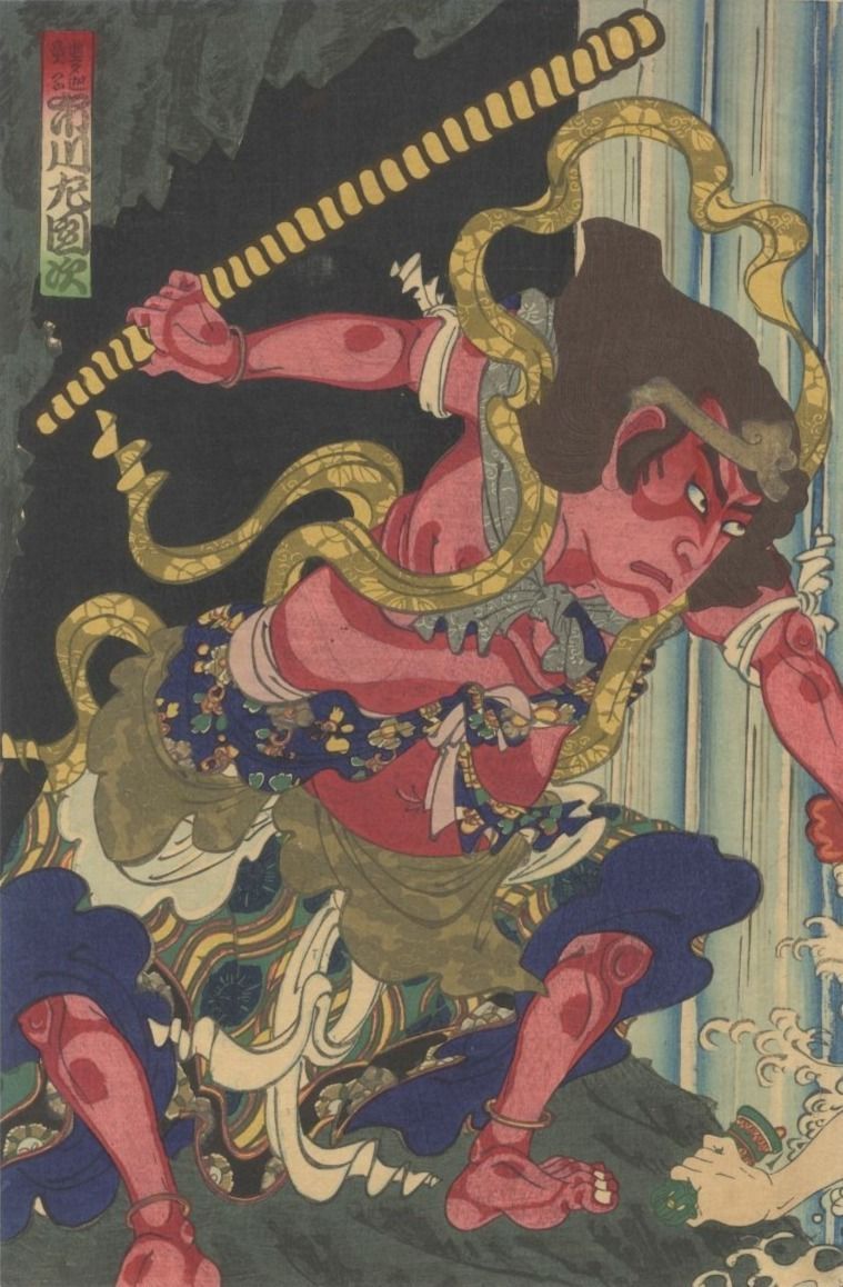 At Nachi no Taki, one of Japan’s most sacred waterfalls, Mongaku subjected himself to extreme ascetic practice. Sitting beneath a freezing wall of water for weeks, he recited mantras to Fudō Myōō, the immovable protector of Buddhist law.
